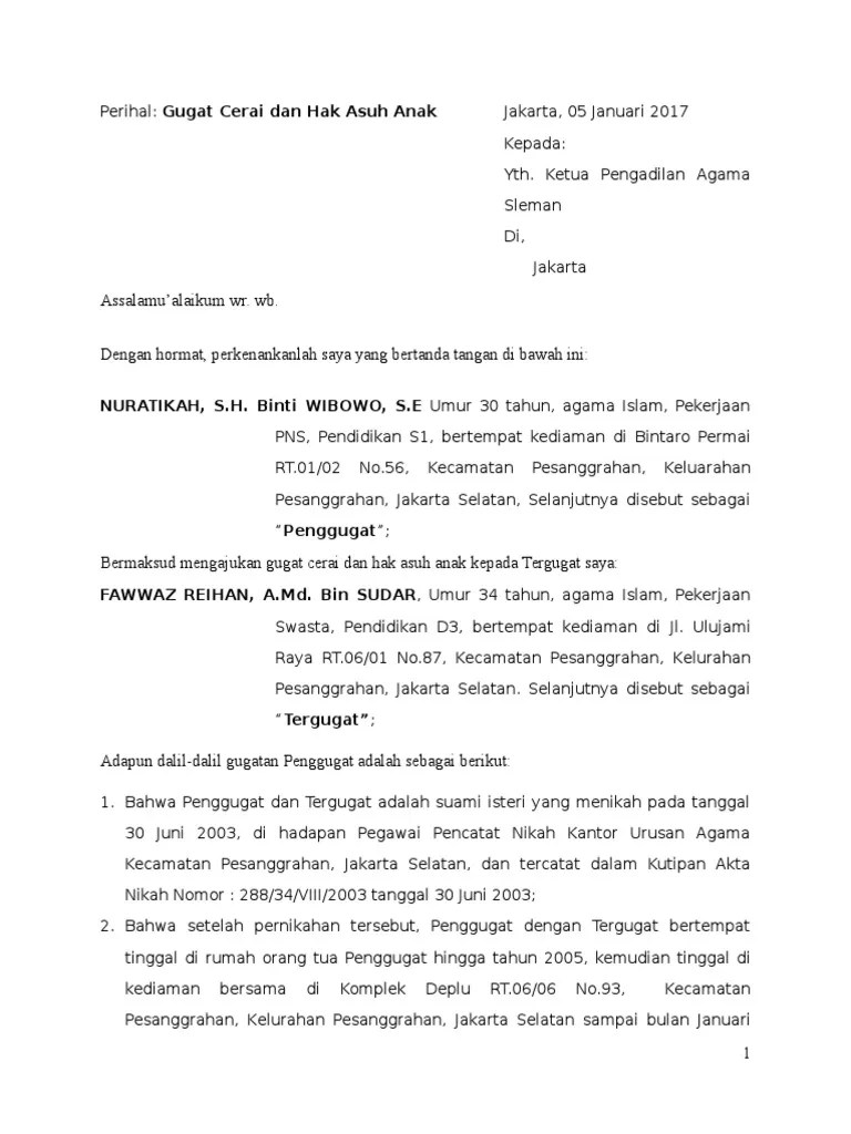 Tentang data penggugat dan tergugat. Ada pemandangan unik kalo kita main ke pengadilan agama, sejak pengadilan agama tidak lagi mau untuk membuatkan gugatan / permohonan maka hal ini menciptakan lapangan kerja baru bagi para pembuat gugatan, lumayan sich. Hasan (penggugat) dan amir bin sutomo (tergugat). Format surat gugatan cerai author: Isilah nama lengkap anda (penggugat) dan suami (tergugat) termasuk gelar dan nama orang tua anda sesuai dengan dokumen …